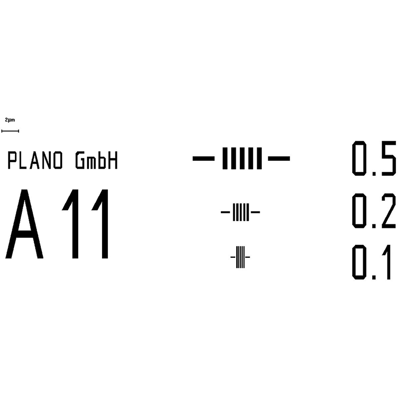 به منظور کالیبره کردن تصویر SEM نیاز به استفاده از نمونههایی است که ابعاد و مشخصات مشخصی دارند. این نمونه حاوی سه الگوی خط است که تعداد و فاصله خطوط در آن مشخص است. الگوها داخل سیلیکون با عمقی حدود 45 تا 500 نانومتر زدایش شده است. هیچ پوششی بر روی سطح سیلیکون قرار ندارد. با مقایسه این خطوط با تصویر میتوان ابعاد دقیق نانو ساختارها را بدست آورد.
